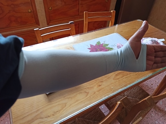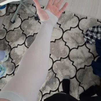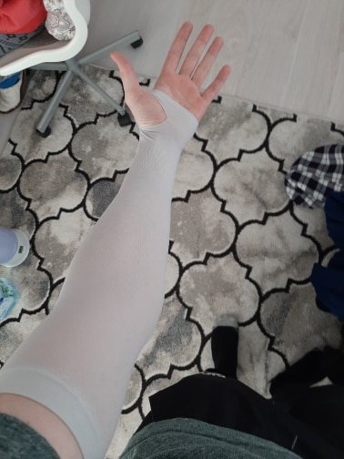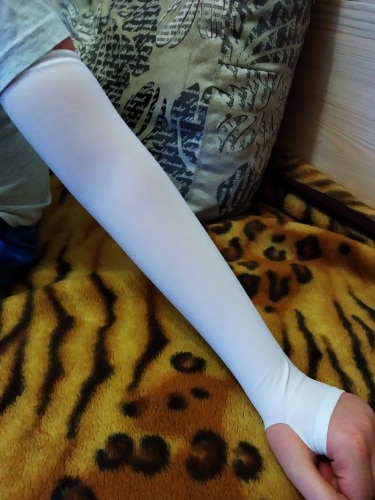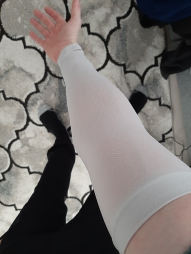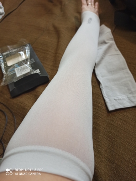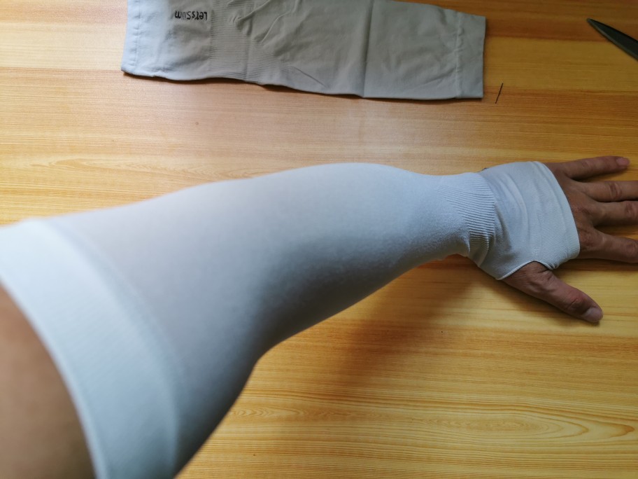 When worn, our compression nylon material hugs your arms tightly, helping improve muscle shape and elasticity over time. Bloating will also go down, revealing a more shapely build. Our nylon is soft and breathable, and quick-drying for sweat relief. Each sleeve is also stretchy for a comfortable wear and fuss-free removal.