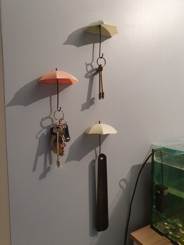 Beautiful umbrellas, as in the photo, are well attached, hold on the wall, the Keys stand. The only thing that the handle at the umbrella is a little crooked, but when you hang the keys, it aligns, I think in the future it aligns forever due to constant load. Recommend to buy!