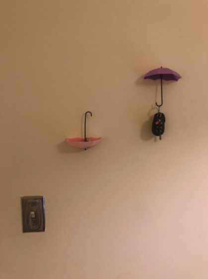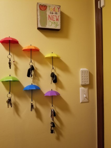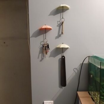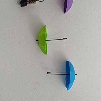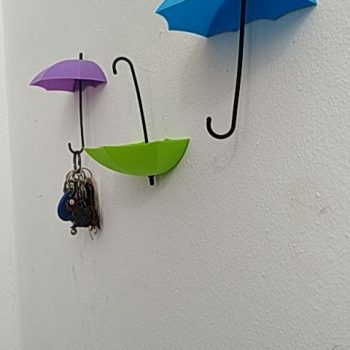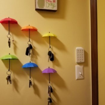 These umbrella key hooks are so cute! I did not give a great rating for adhesion because I used Command Strips to put them up as I am in a rented home. Otherwise I like them a lot!