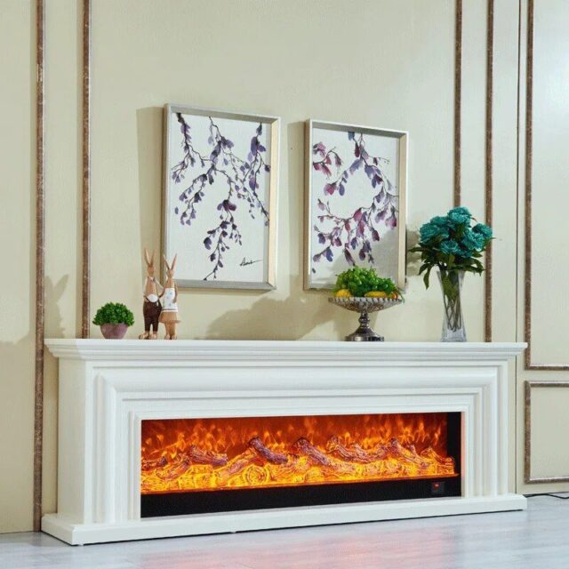 This electric fireplace set stands out with its intricate European craftsmanship and advanced heating technology. The realistic LED flame coupled with the elegant wooden mantel makes it not just a fireplace, but a piece of art. Its unique design and functionality cater to both aesthetic and practical needs.