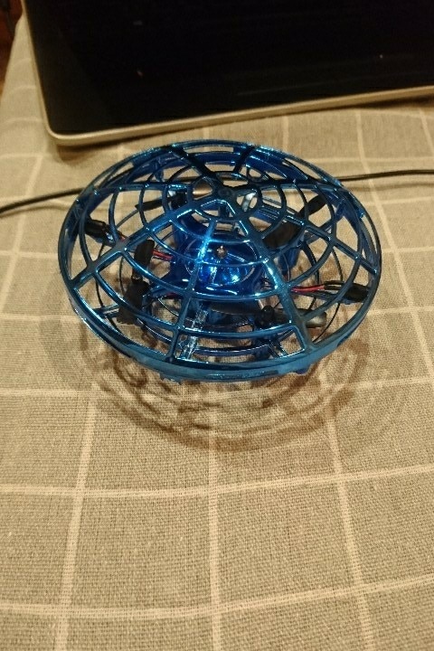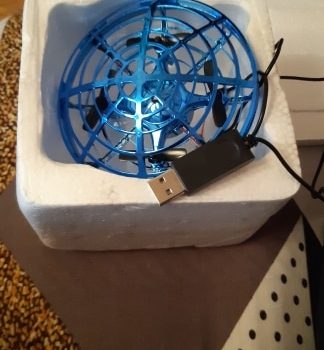 Charge up this lithium battery-powered toy with a USB cord (included with purchase). The UFO fully charges in 35 minutes for eight-ten minutes of uninterrupted flying time.