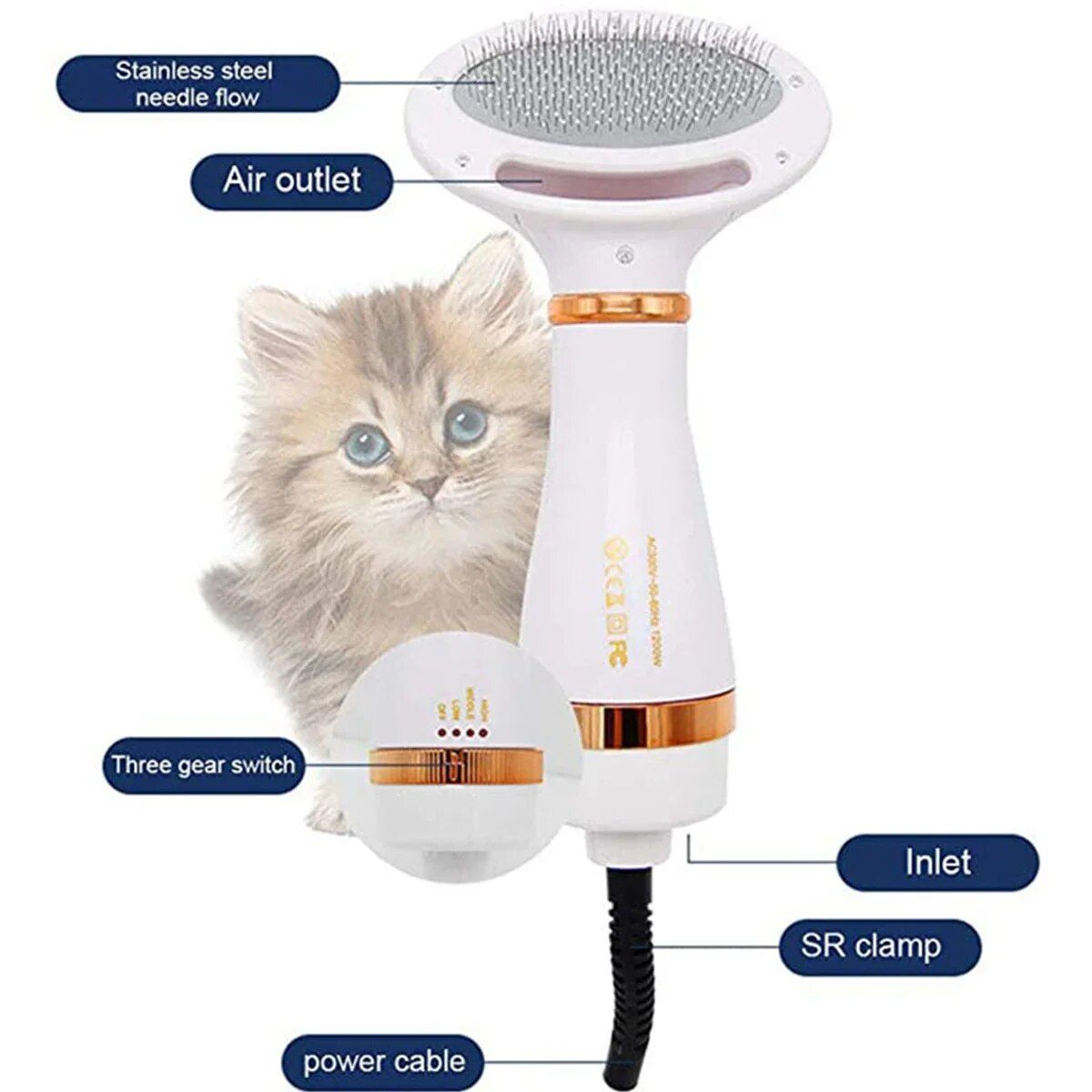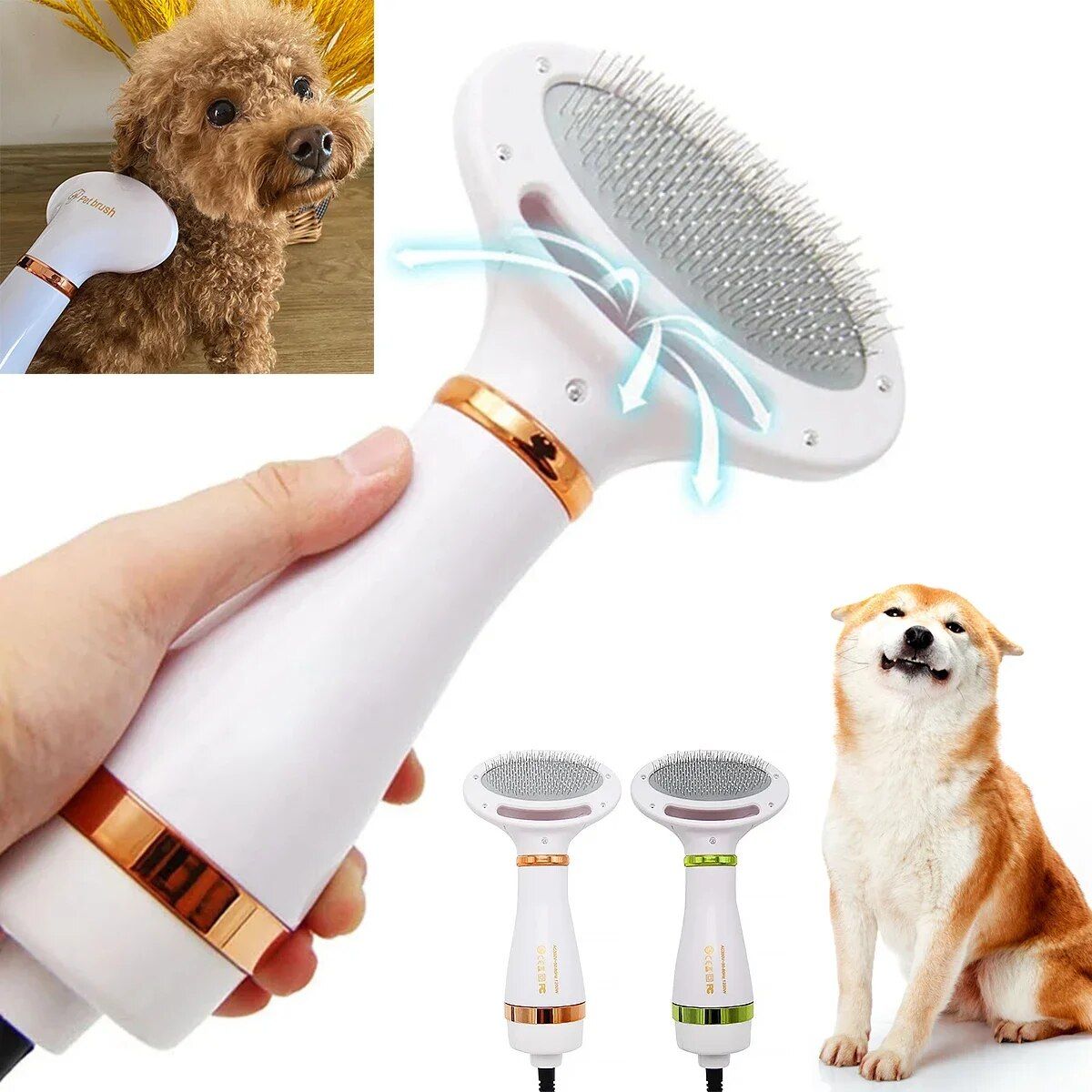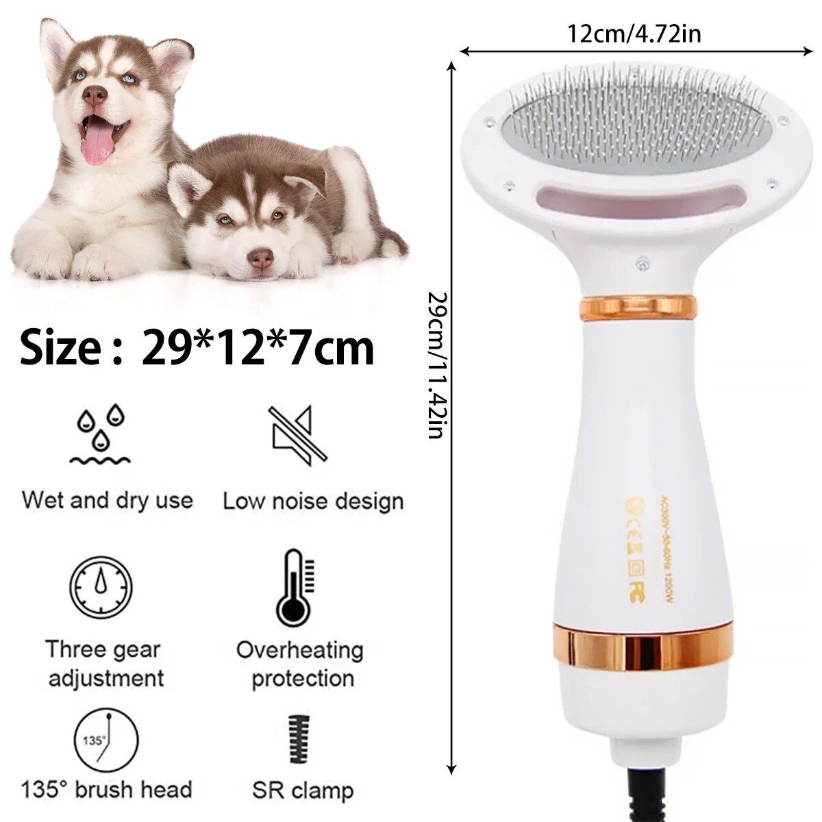 Hair Dryer and Comb Brush Portable Dog Hair Blower Adjustable Temperature Low Noise Pet Grooming Hair Dryer Puppy Fur Blower