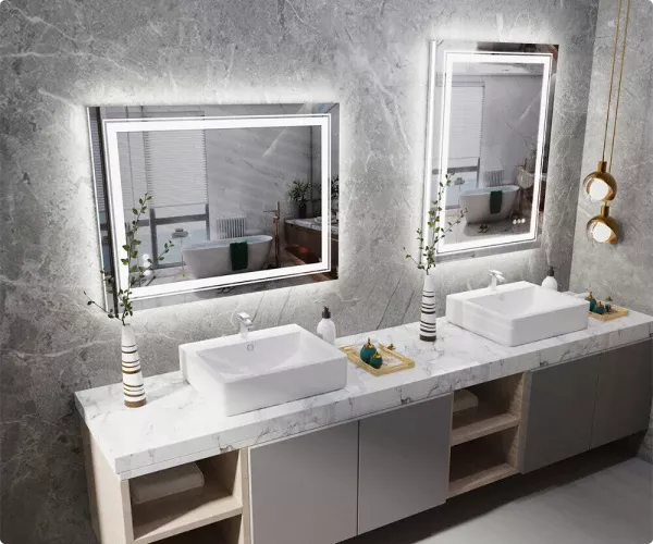 Introducing our state-of-the-art Waterproof Double Sink Mirror, a perfect blend of sophistication and functionality for your bathroom or dressing area. With its expansive full-length design and modern lighting, this mirror provides an unmatched clarity that is essential for your daily grooming and dressing needs. Crafted to create an atmosphere of luxury, it enhances your space with a luminous glow and a touch of modernity.