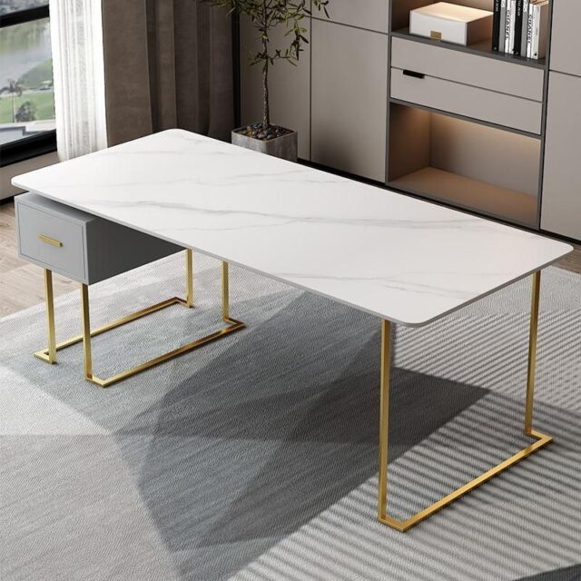 Ideal for busy offices, bustling restaurants, and other commercial settings, this desk serves as a focal point for your space. It’s especially effective in environments where first impressions are crucial, like in hotels, corporate buildings, and upscale retail stores. The blend of metal and mable, along with its pristine white finish, makes it versatile for various design themes, from minimalistic to modern luxury.