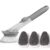It’s perfect for daily kitchen use, from scrubbing pots and pans to gently cleaning delicate glassware. The interchangeable brush heads, one with tough bristles and another with a soft sponge, cater to different cleaning needs, making it versatile for all your kitchen cleaning chores.