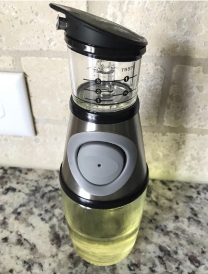 Love this dispenser! This purchase was inspired by Home Chef meal kids I’ve been getting for over two years and have guessed or caused extra dishes on the olive oil volume the entire time. Everything else comes pre-measured. This is SO much quicker and easier to use! I love that it can be cleaned in dishwasher, hate washing oily bottles. This time the stars aligned and I absolutely LOVE this product!!